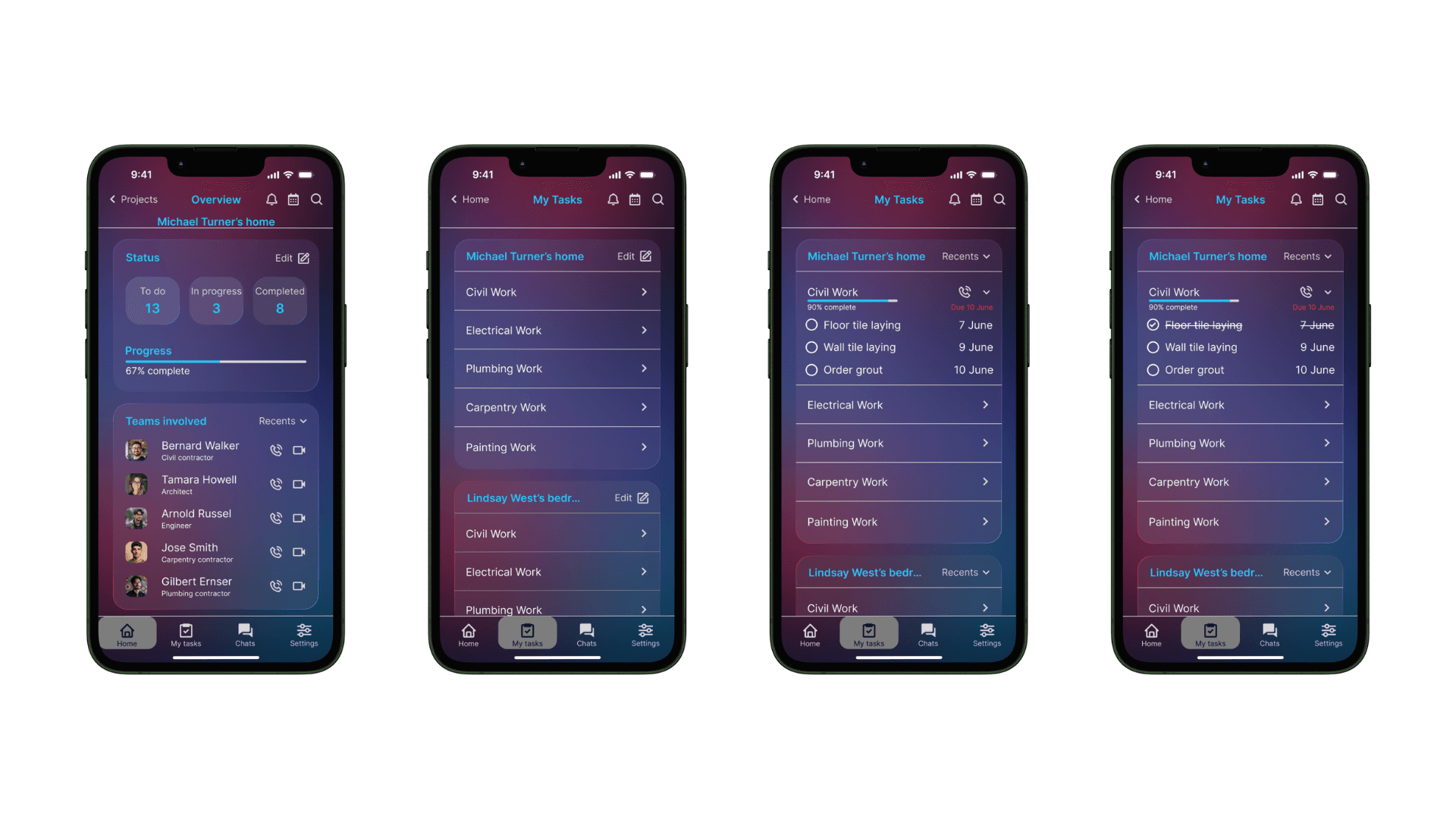 To develop a user friendly mobile application that enables architects, contractors and clients to have seamless communication, easily update and track the progress thereby improving overall experience and increasing the efficiency by minimizing the need for calls and meetings.